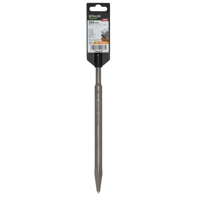 Odolný špicatý sekáč SDS plus s dĺžkou 250 mm od STALCO PERFECT. Vyrobený z vysokokvalitnej kalenej ocele pre maximálnu životnosť a efektivitu pri búracích prácach v betóne a murive.