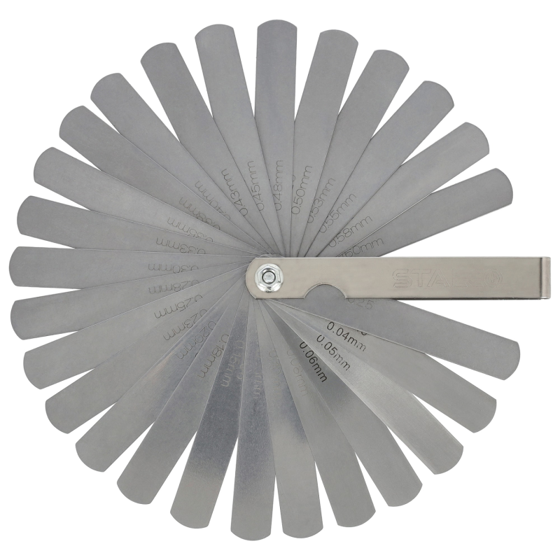 Presný 26-listový škáromer STALCO s rozsahom 0,04 - 0,63 mm. Vyrobený z kvalitnej nehrdzavejúcej pružinovej ocele 65 Mn. Ideálny na meranie a nastavovanie medzier v mechanike a automobilovom priemysle.