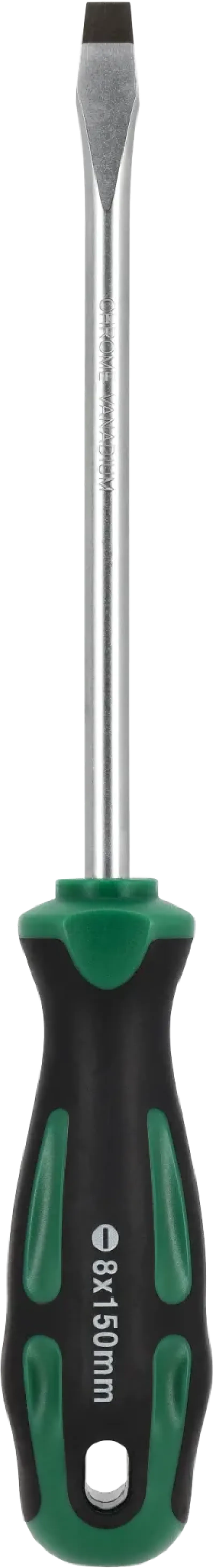 Masívny plochý skrutkovač 8 mm pre ťažké práce. Dĺžka 150 mm. Vhodný na povoľovanie veľkých skrutiek a páčenie. Odolná CrV oceľ.