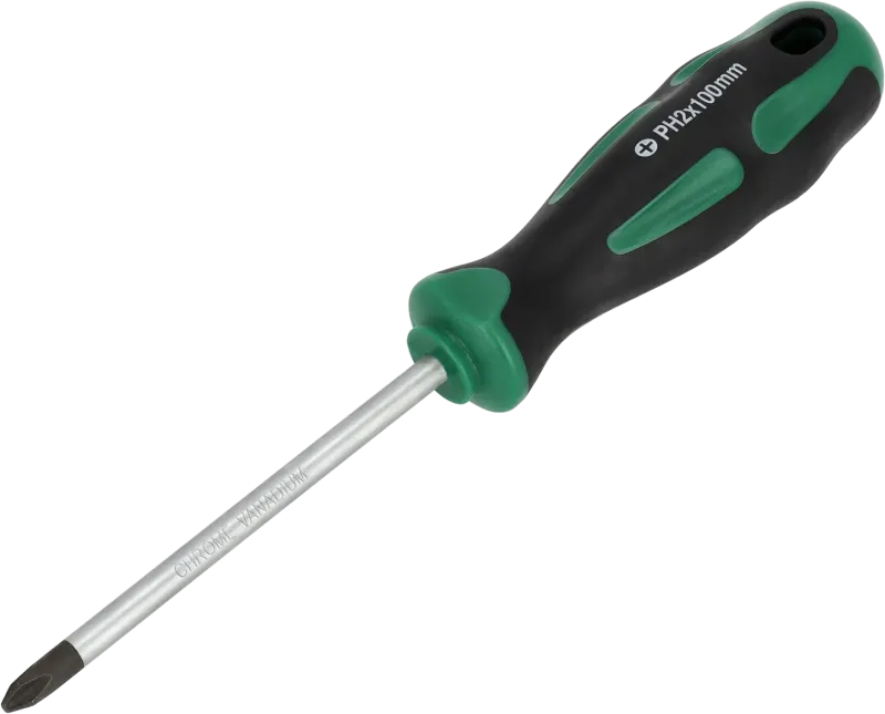 Najpoužívanejší rozmer skrutkovača PH2 x 100 mm. Driek z CrV ocele pre vysokú odolnosť. Magnetický hrot, ergonomická rukoväť. Vhodný pre sadrokartón a tesárske skrutky.