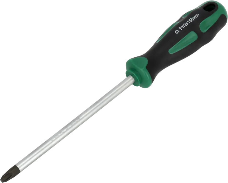 Veľký krížový skrutkovač PH3 pre náročné montáže. Dĺžka 150 mm. Masívna konštrukcia z CrV ocele pre veľké skrutky a vysoký krútiaci moment.