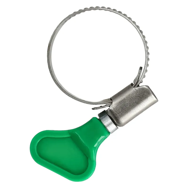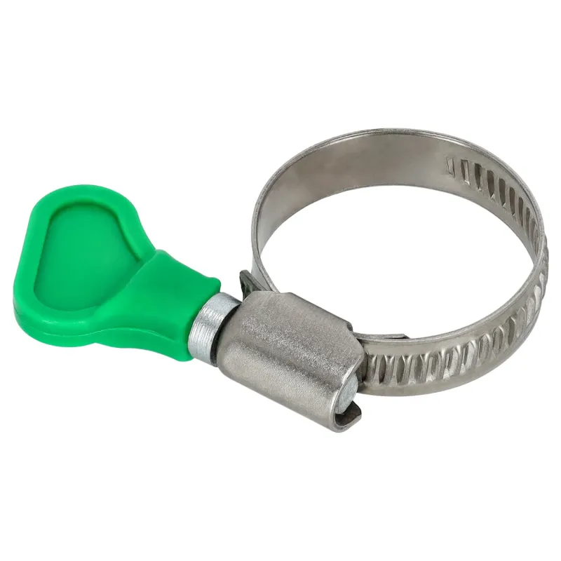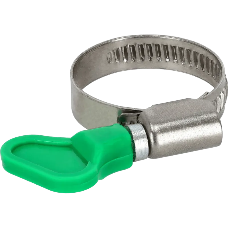 Nehrdzavejúca závitovková hadicová spona s plastovým motýlikom pre rýchlu ručnú montáž bez náradia. Páska z nehrdzavejúcej ocele (9 mm) so zaoblenými hranami chráni hadicu pred poškodením.