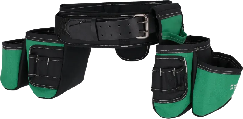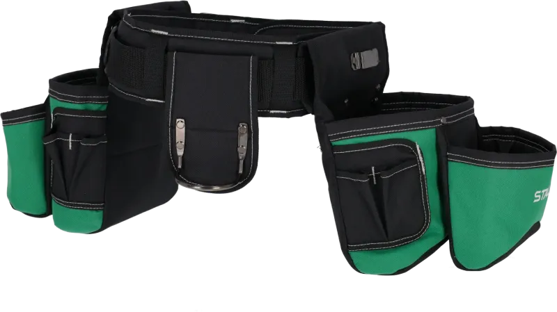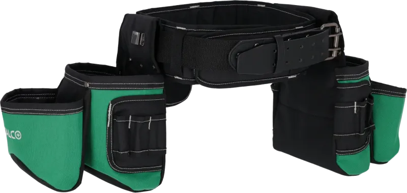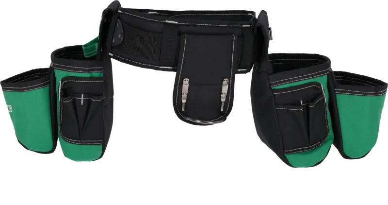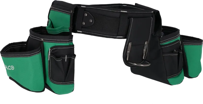 Ergonomický opasok na náradie z polyesteru 600D. 11 vreciek a 14 úchytov na náradie. Vystužená konštrukcia pre komfort pri práci.