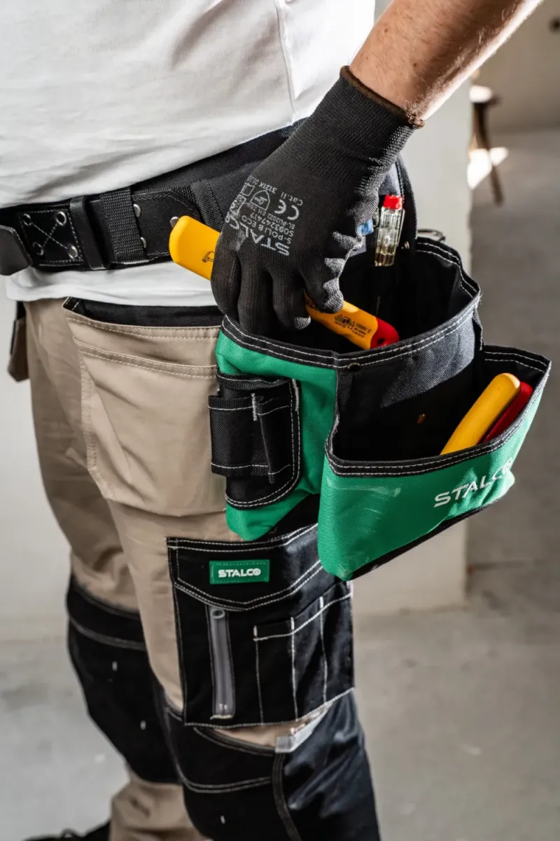 Ponúka dostatok priestoru pre drobné náradie a spojovací materiál vďaka 11 vreckám a 14 úchytom (slučkám). Umožňuje mať všetko dôležité vždy na dosah ruky.