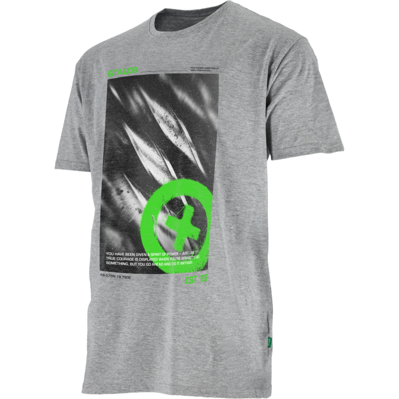 STALCO BONO STINGER je ľahké pracovné tričko s krátkym rukávom a originálnou grafikou, ktoré výborne doplní outfity z kolekcie STALCO a STALCO PERFECT. Dostupné v troch univerzálnych farbách (biela, sivá, čierna), umožňuje jednoduché kombinovanie s pracovnými nohavicami a mikinami.