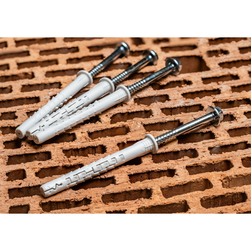 • Kvalitné materiály: Telo hmoždinky z odolného nylonu a pozinkovaná oceľová skrutka zaručujú dlhú životnosť.