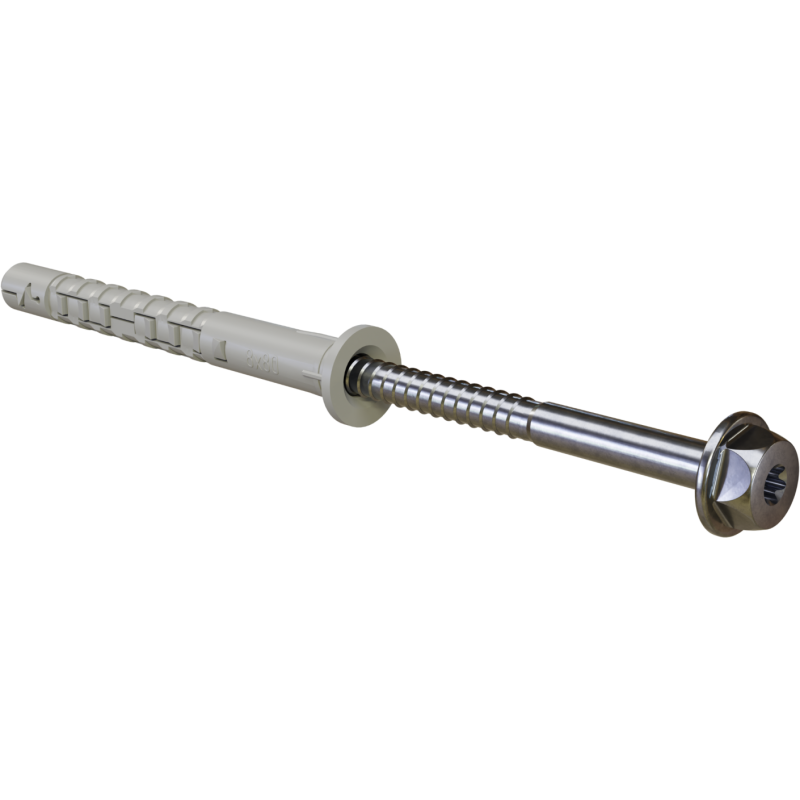 • Kvalitné materiály: Telo hmoždinky z odolného nylonu a pozinkovaná oceľová skrutka zaručujú dlhú životnosť.