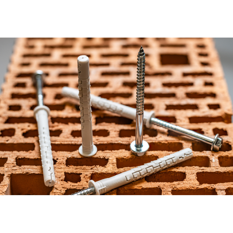 • Spoľahlivé upevnenie: Golier na tele hmoždinky zabraňuje jej zapadnutiu do otvoru a zaisťuje správnu inštaláciu.