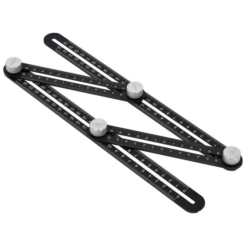 Multifunkčný nastaviteľný šablónový uholník z hliníka. Ideálny na rýchle prenášanie a kopírovanie uhlov. Oxidovaný povrch zaručuje odolnosť voči korózii.