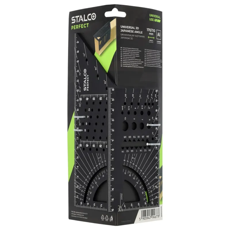 Univerzálny japonský 3D uholník STALCO PERFECT je všestranné náradie na presné vytyčovanie a prenášanie uhlov vo viacerých rovinách.