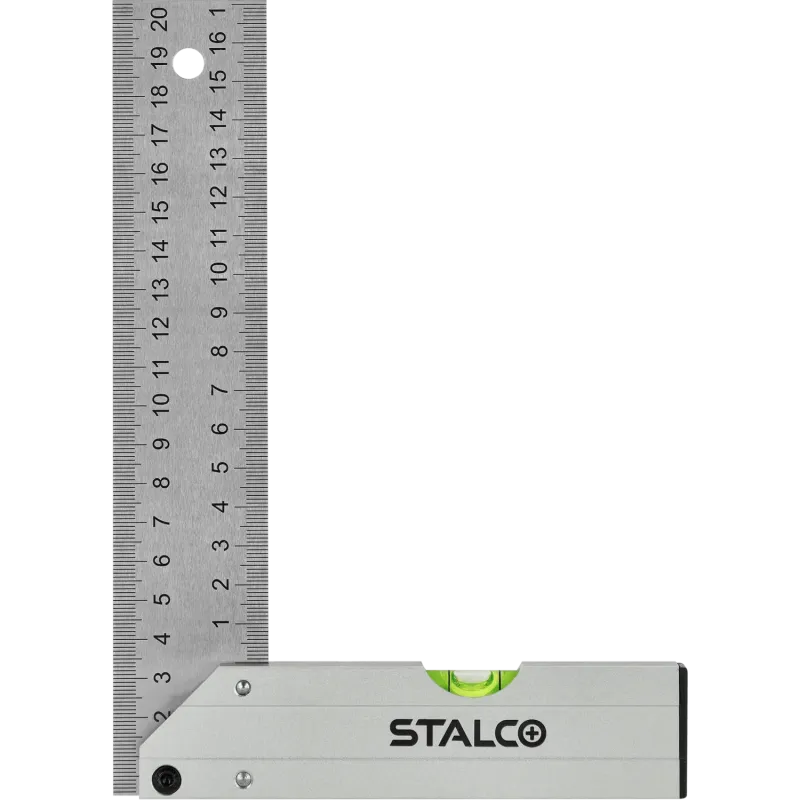 Presný uholník typu L STALCO s pravítkom z nehrdzavejúcej ocele, určený na presné meracie a kontrolné práce.