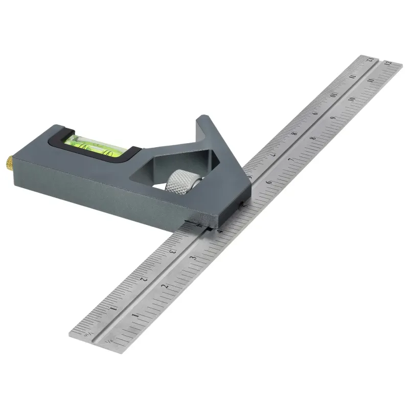 Profesionálny CNC nastaviteľný uholník (300 mm) pre náročné merania. Pravítko z nehrdzavejúcej ocele, eloxovaná hliníková základňa, medené upínacie koliesko a zabudované libely.