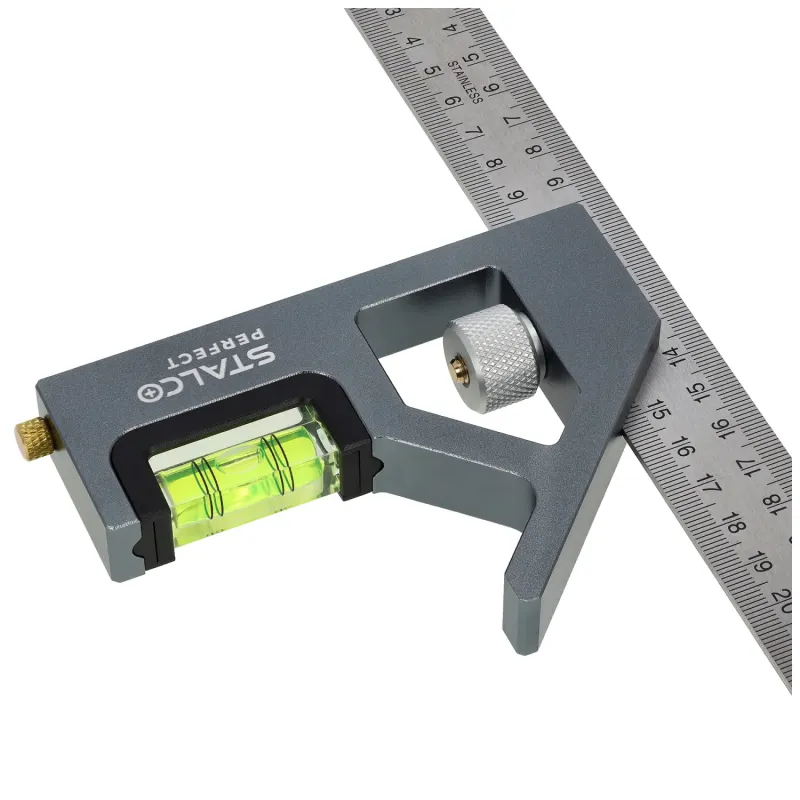 Zabudované vertikálne a horizontálne libely s presnosťou 0,5 mm/m zvyšujú kontrolu merania a ryhovacia ihla v základni uľahčuje presné rysovanie.