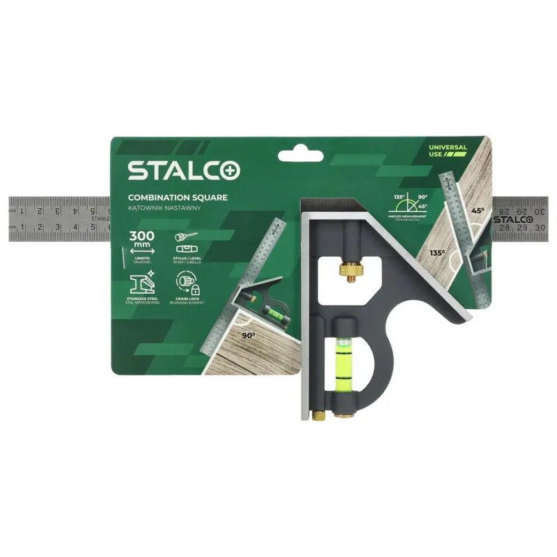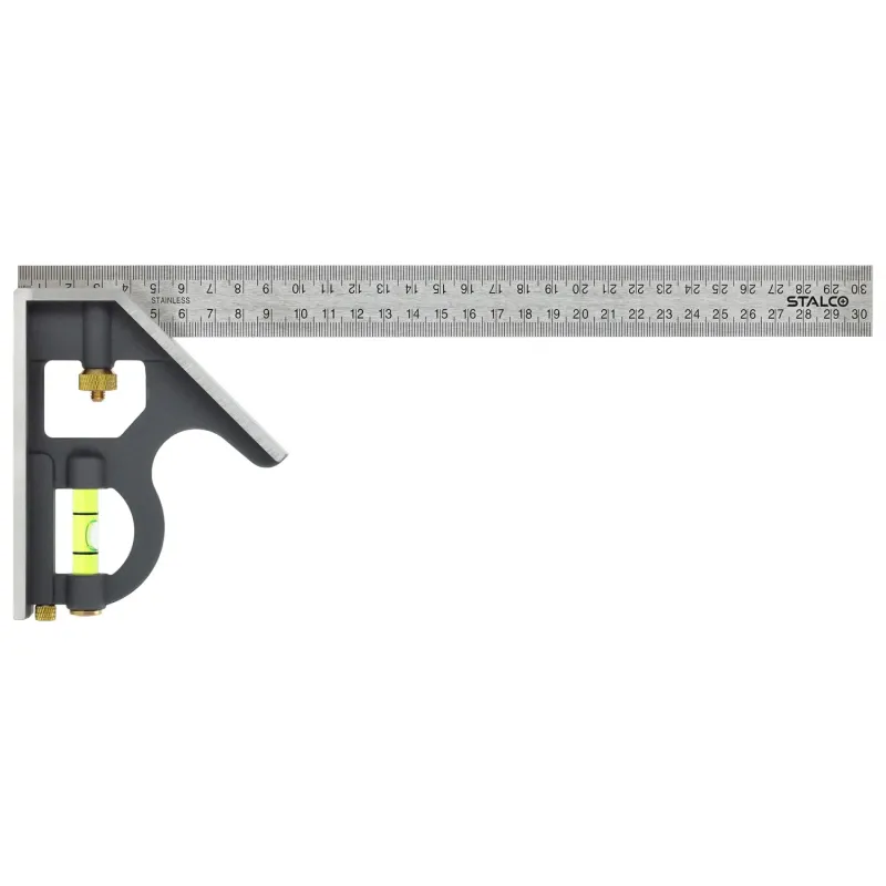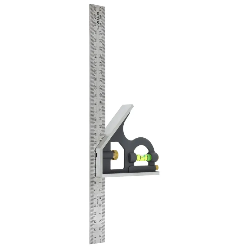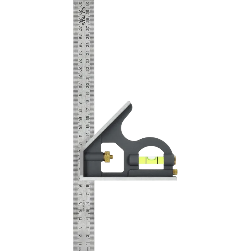 Pevný nastaviteľný uholník heavy duty (300 mm) na presné montážne práce. Pravítko z nehrdzavejúcej ocele, hliníková základňa s libelami a ryhovacou ihlou.