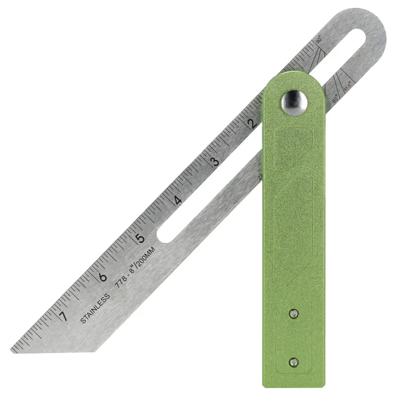 Ergonomická rukoväť z eloxovaného hliníka spolu s pevným zaisťovacím kolieskom zaisťuje trvanlivosť a stabilitu nastavenia. Pravítko z nehrdzavejúcej ocele s laserovou stupnicou a uhlovými značkami zaručuje čitateľnosť, presnosť a odolnosť voči oderu.