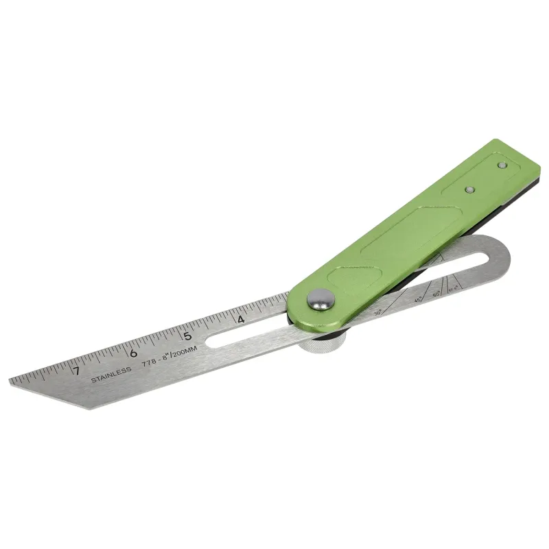 Presný nastaviteľný T-uholník (233 mm) na rýchle vytyčovanie uhlov. Ergonomická rukoväť z eloxovaného hliníka a nerezové pravítko s laserovou stupnicou.