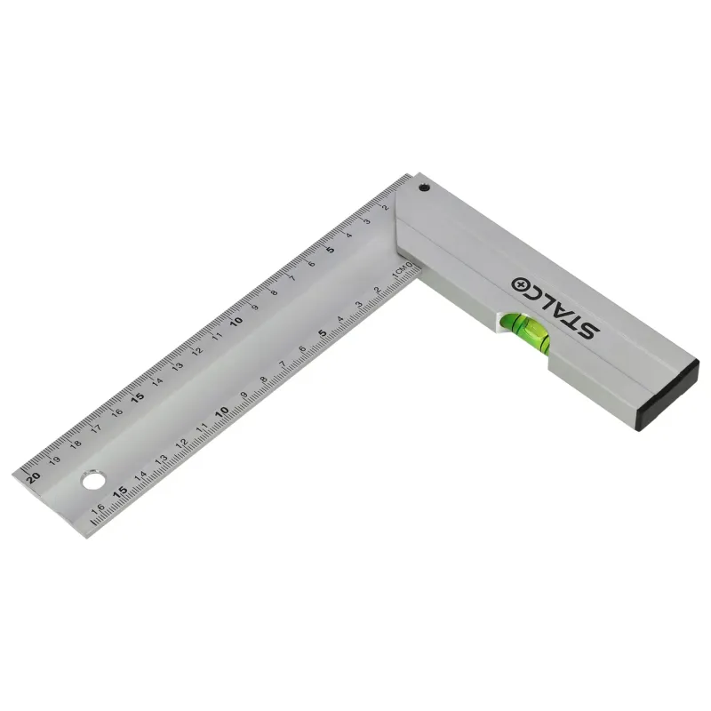 Ľahký a presný hliníkový uholník (200 mm) pre meracie práce. Pevná konštrukcia, čitateľná stupnica a zabudovaná libela na kontrolu roviny.
