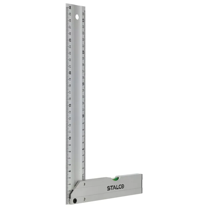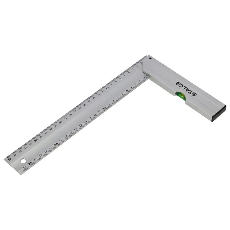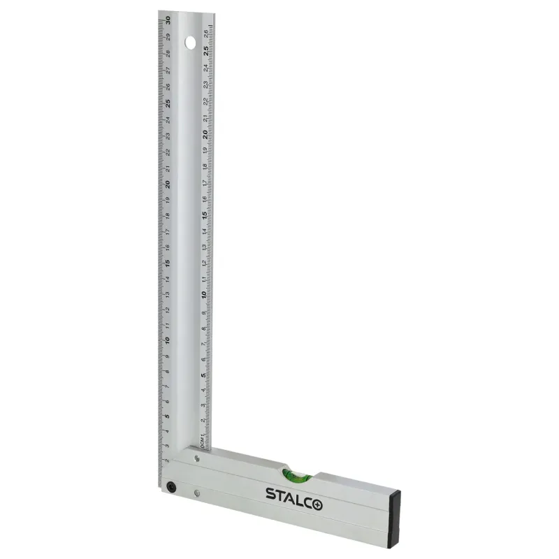 Ľahký a presný hliníkový uholník (300 mm) pre meracie práce. Pevná konštrukcia, čitateľná stupnica a zabudovaná libela na kontrolu roviny.