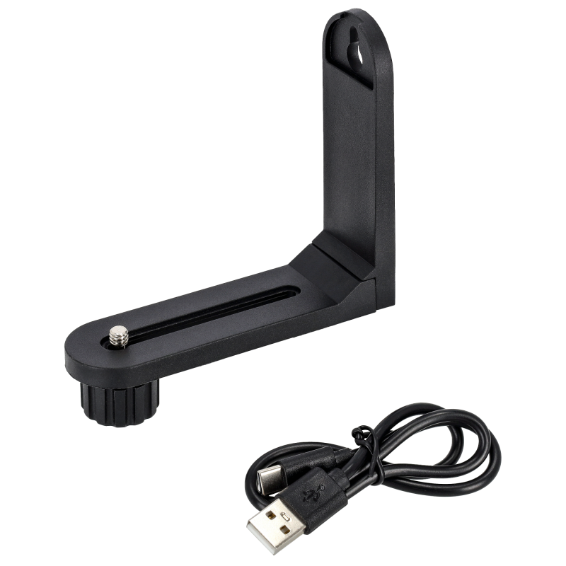 Obsah balenia zahŕňa uchytenie lasera, USB kábel a ochranné puzdro na prenášanie, čo uľahčuje bezpečnosť a prenos.