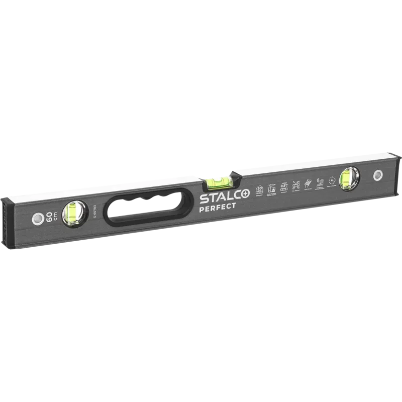 Zosilnená hliníková vodováha STALCO PERFECT (60 cm) je špičkový merací prístroj určený pre profesionálov v stavebníctve. Vyniká extrémne pevnou dvojkomorovou konštrukciou (I-profil), ktorá zaručuje vysokú tuhosť a odolnosť voči ohybu. Povrch je chránený oteruvzdornou práškovou farbou.