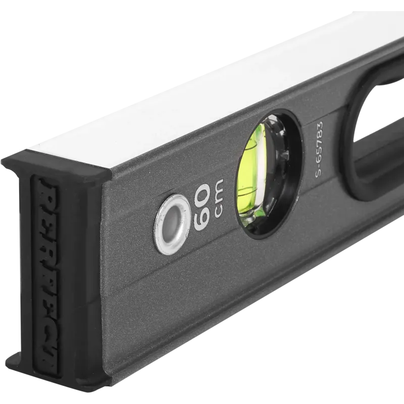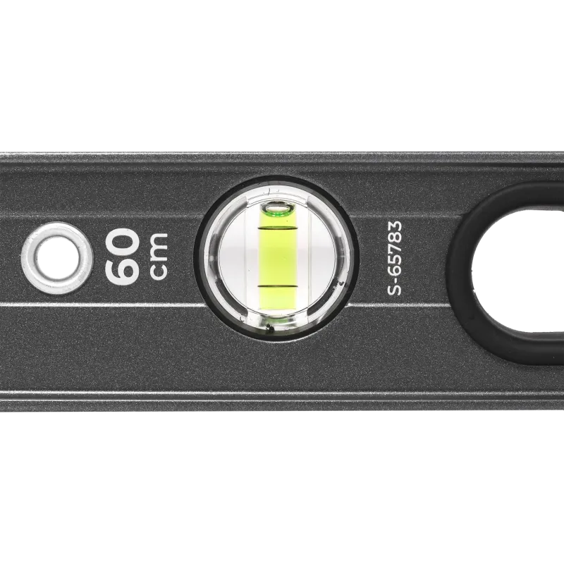 Profesionálna zosilnená hliníková vodováha (I-profil) s dĺžkou 60 cm. Obojstranne frézovaná hrana, 3 libely (zväčšená horizontálna), presnosť 0.5 mm/m. Nárazy pohlcujúce koncovky.