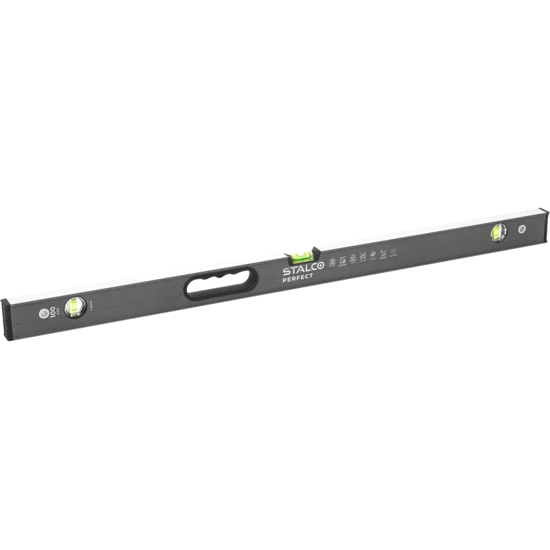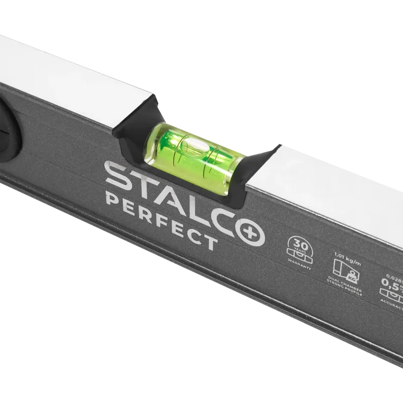 Zosilnená hliníková vodováha STALCO PERFECT (100 cm) je špičkový merací prístroj určený pre profesionálov v stavebníctve. Vyniká extrémne pevnou dvojkomorovou konštrukciou (I-profil), ktorá zaručuje vysokú tuhosť a odolnosť voči ohybu. Povrch je chránený oteruvzdornou práškovou farbou.