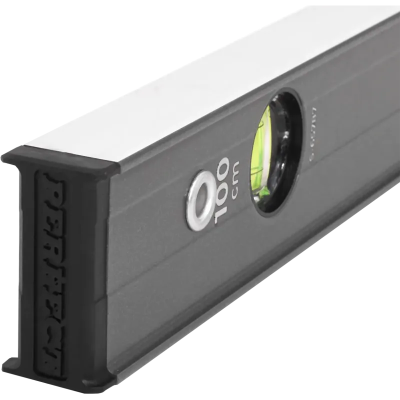 Profesionálna zosilnená hliníková vodováha (I-profil) s dĺžkou 100 cm. Obojstranne frézovaná hrana, 3 libely (zväčšená horizontálna), presnosť 0.5 mm/m. Nárazy pohlcujúce koncovky.