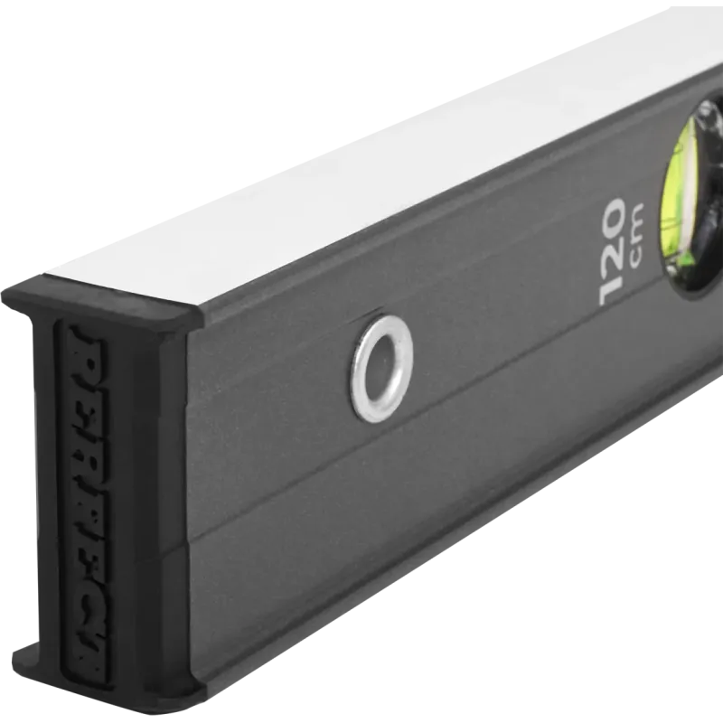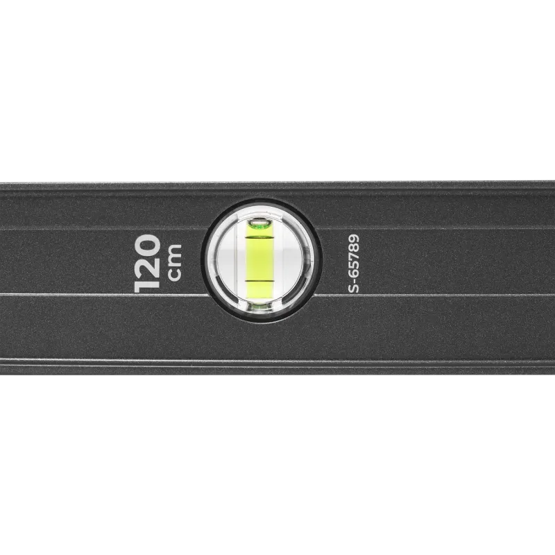 Profesionálna zosilnená hliníková vodováha (I-profil) s dĺžkou 120 cm. Obojstranne frézovaná hrana, 3 libely (zväčšená horizontálna), presnosť 0.5 mm/m. Nárazy pohlcujúce koncovky.