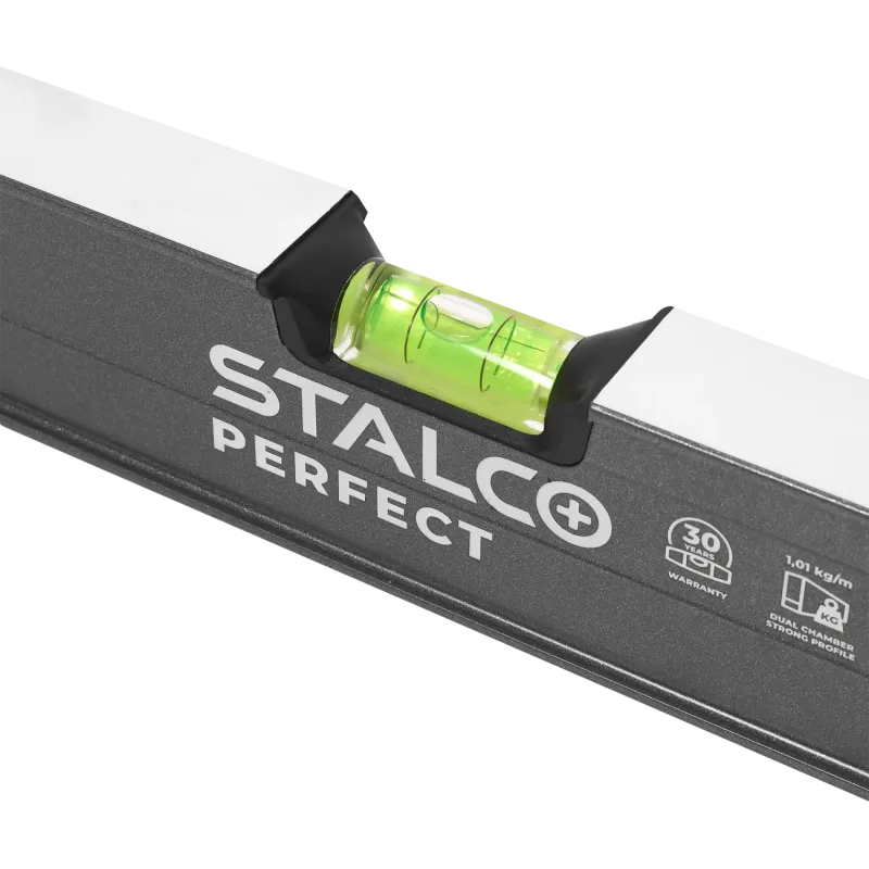 Zosilnená hliníková vodováha STALCO PERFECT (120 cm) je špičkový merací prístroj určený pre profesionálov v stavebníctve. Vyniká extrémne pevnou dvojkomorovou konštrukciou (I-profil), ktorá zaručuje vysokú tuhosť a odolnosť voči ohybu. Povrch je chránený oteruvzdornou práškovou farbou.
