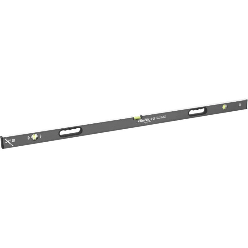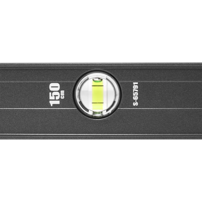 Profesionálna zosilnená hliníková vodováha (I-profil) s dĺžkou 150 cm. Obojstranne frézovaná hrana, 3 libely (zväčšená horizontálna), presnosť 0.5 mm/m. Nárazy pohlcujúce koncovky.