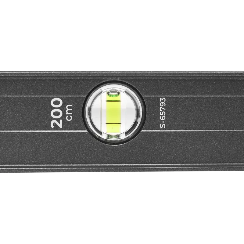 Profesionálna zosilnená hliníková vodováha (I-profil) s dĺžkou 200 cm. Obojstranne frézovaná hrana, 3 libely (zväčšená horizontálna), presnosť 0.5 mm/m. Nárazy pohlcujúce koncovky.