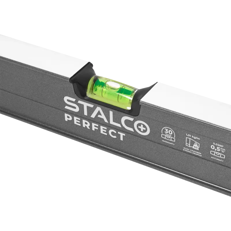 Zosilnená hliníková vodováha STALCO PERFECT (200 cm) je špičkový merací prístroj určený pre profesionálov v stavebníctve. Vyniká extrémne pevnou dvojkomorovou konštrukciou (I-profil), ktorá zaručuje vysokú tuhosť a odolnosť voči ohybu. Povrch je chránený oteruvzdornou práškovou farbou.