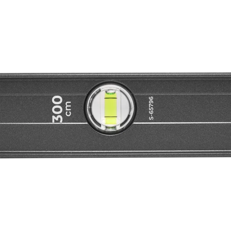 Profesionálna najdlhšia zosilnená vodováha (I-profil) s dĺžkou 300 cm. 3 libely so zväčšenou horizontálnou libelou, presnosť 0.5 mm/m. Tlmiace koncovky.