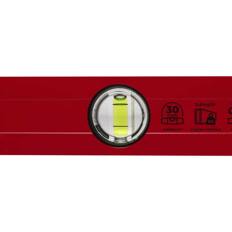 • Špičkové libely (3 kusy): Vybavená antistatickými libelami so zväčšovacou šošovkou pre jednoduchšie odčítanie. Sú plne odolné voči nárazom, UV žiareniu a teplotným výkyvom. Výrobca na ne poskytuje záruku 30 rokov.