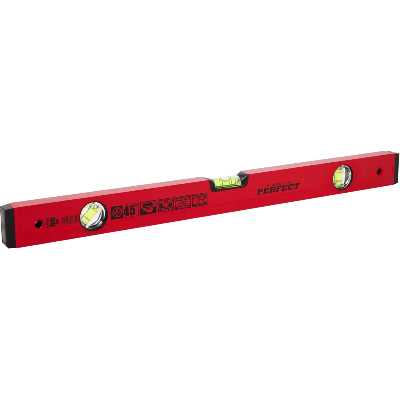 Profesionálna hliníková vodováha STALCO PERFECT (60 cm) je vybavená tromi libelami, čo umožňuje presné meranie roviny, zvislice a uhla 45 stupňov. Je vynikajúcim nástrojom pre inštalatérov (zameriavanie spádov kanalizácie), obkladačov a tesárov.
