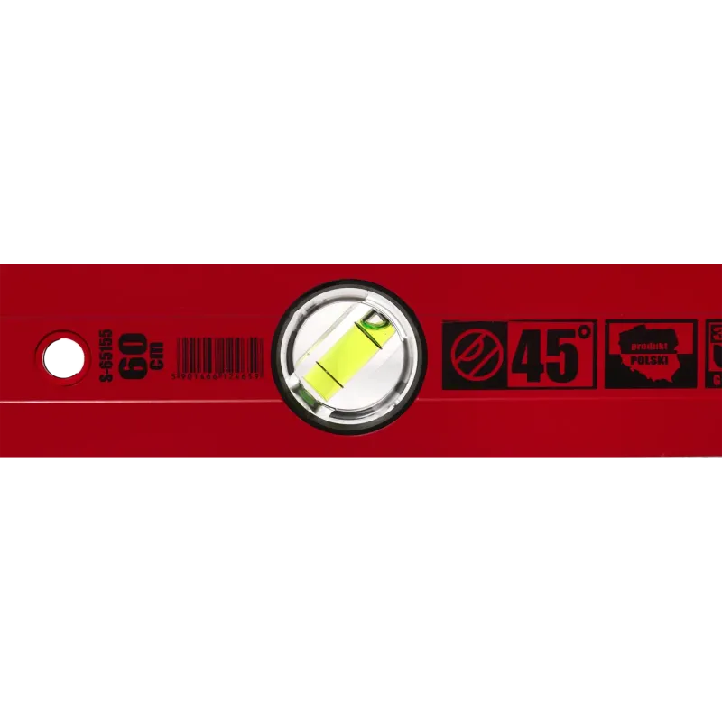 Hliníková vodováha z prémiovej rady s dĺžkou 60 cm a 3 libelami (vrátane 45-stupňovej). Práškovo lakovaná, presnosť 0.5 mm/m. Záruka 30 rokov na libely.