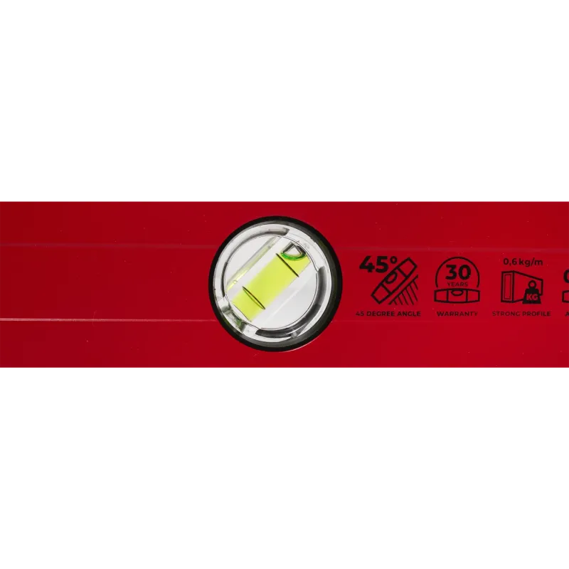 Hliníková vodováha z prémiovej rady s dĺžkou 100 cm a 3 libelami (vrátane 45-stupňovej). Práškovo lakovaná, presnosť 0.5 mm/m. Záruka 30 rokov na libely.