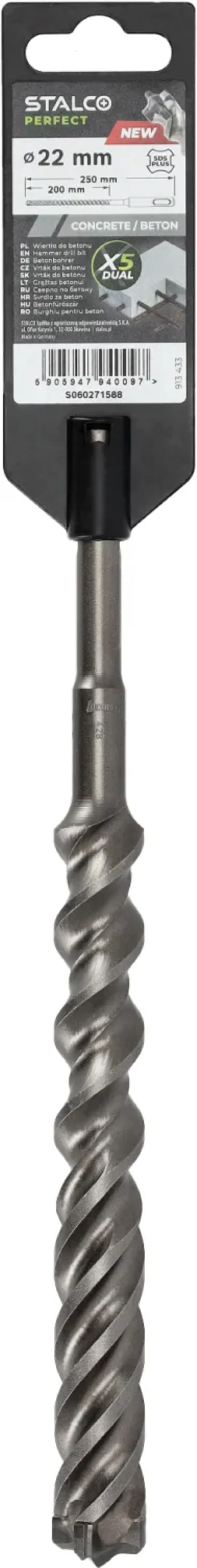 Prémiový vrták STALCO PERFECT X5 DUAL 25x250 mm pre vŕtanie do železobetónu. Monolitný 4-britvový karbidový hrot a unikátna dvojitá špirála zaručujú maximálny výkon a životnosť.