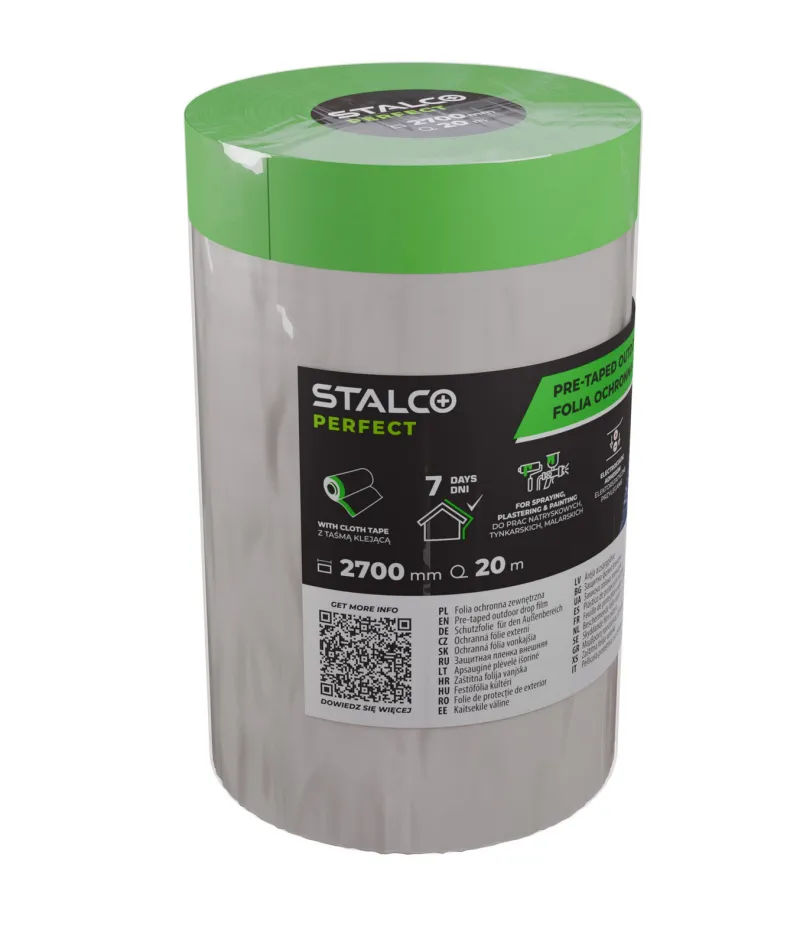 Vonkajšia ochranná fólia STALCO PERFECT je špecializovaný stavebný produkt určený na precízne zabezpečenie povrchov počas maliarskych a omietkárskych prác. Fólia je vyrobená z odolného HDPE a elektrostaticky priľne k podkladu, čím účinne chráni povrchy pred znečistením, prachom a vlhkosťou.