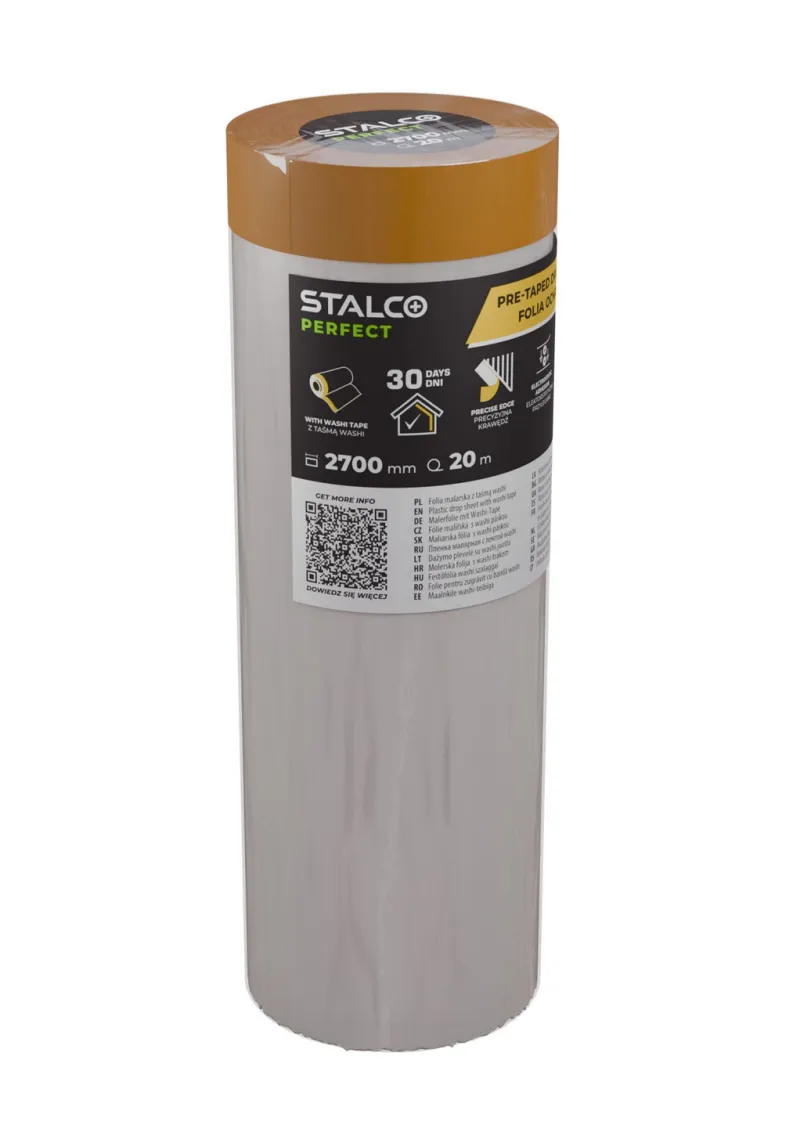 Profesionálna maskovacia fólia (2700 mm x 20 m) s integrovanou washi páskou. Zaručuje perfektne ostré hrany bez podtečenia. Elektrostaticky priľne, UV odolná.