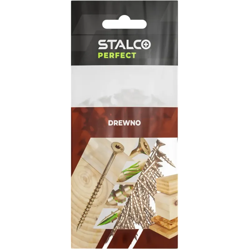 Profesionálna tvrdená skrutka STALCO do dreva a drevotrieskových dosiek. Je vyrobená z uhlíkovej ocele pokrytej vrstvou zinku. Skrutky majú dodatočnú frézu a frézovacie rebrá pre jednoduchšie skrutkovanie. Zapustená hlava je zakončená drážkou TORX.