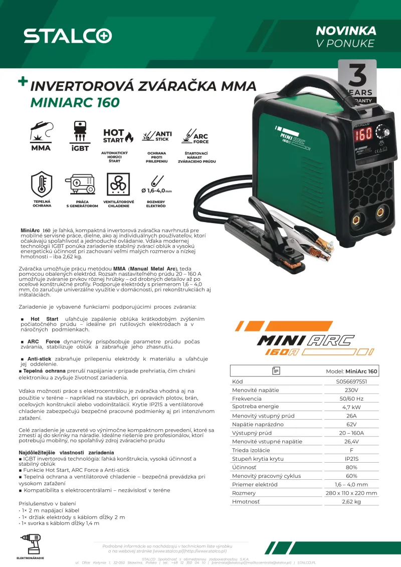 Invertorová zváračka MMA MiniArc 160 STALCO